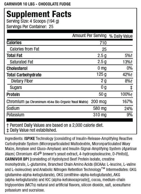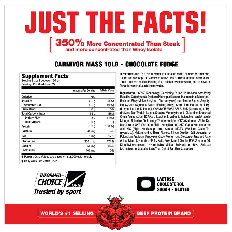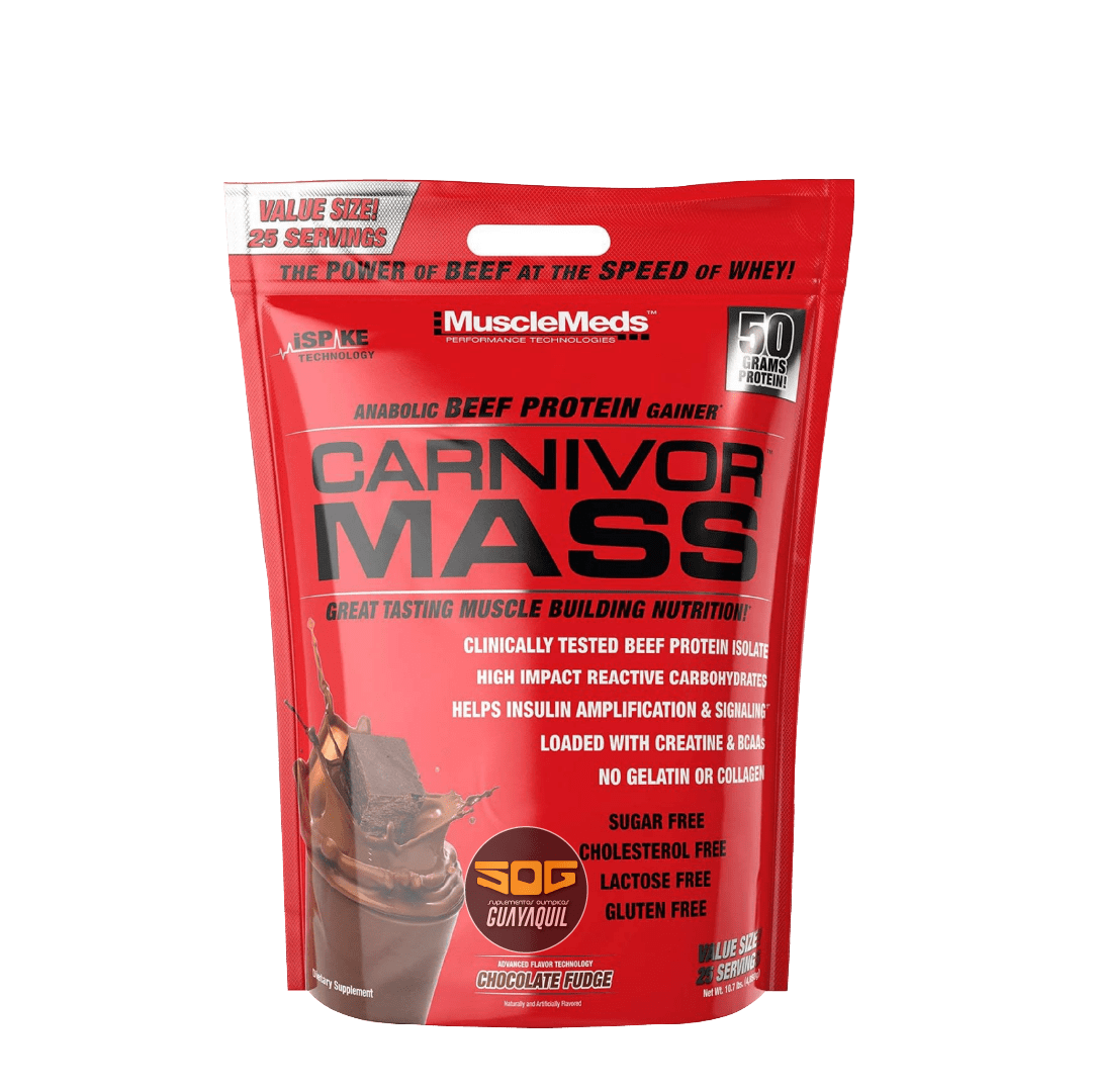 El primer ganador de masa del mundo hecho de carne. Bienvenidos a la nueva era en los suplementos para crear masa muscular con el CARNIVOR MASS, el más rápido, seguro y altamente anabólico ganador de masa muscular. Los días de llenarte el cuerpo con calorías provenientes de las grasas ya terminaron. Las calorías no estimular el crecimiento muscular – el anabolismo es que lo hace”. Macronutrientes de rápida asimilación con una casi perfecta optimización de la insulina deja aparte a CARNIVOR MASS del resto. Como los profesionales saben, las proteínas rápidas combinadas con insulina elevada, es igual a un anabolismo muscular explosivo (crecimiento). Esto es finalmente posible con la famosa proteína de MuscleMeds Beef Protein Isolate en combinación con iSpike, un amplificador de la liberación de insulina no encontrado en ningún otro suplemento.